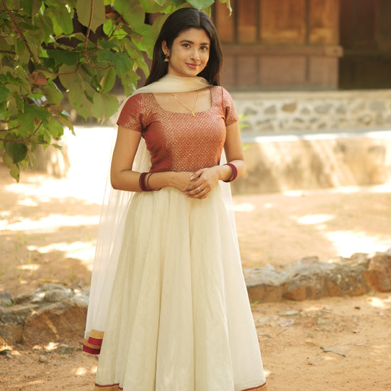 Aghalya - White Tissue Anarkali & Dupatta Set