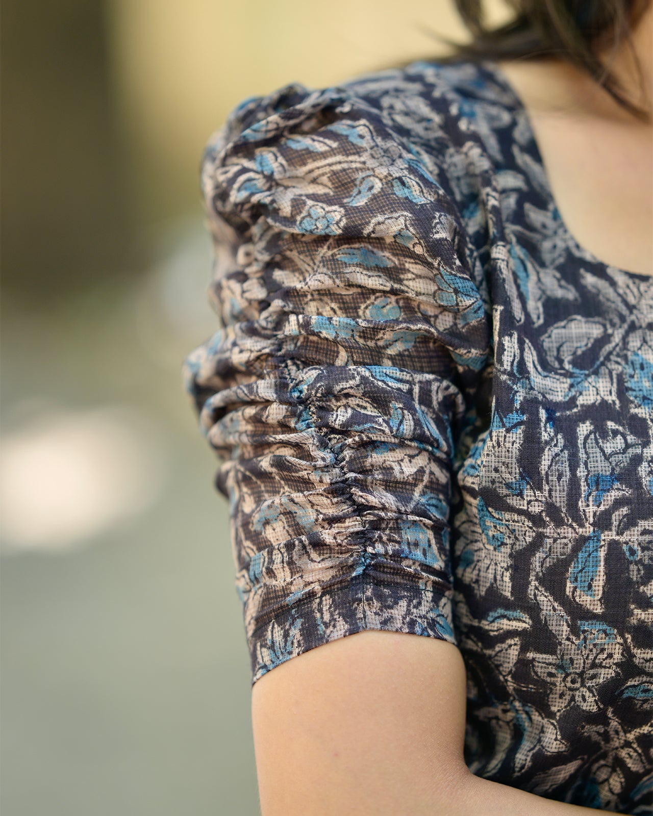Featuring stylish puff sleeves and a flattering silhouette, it blends tradition with a modern twist—ideal for daily wear or casual outings.