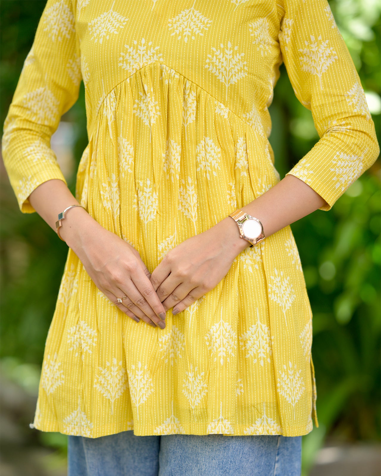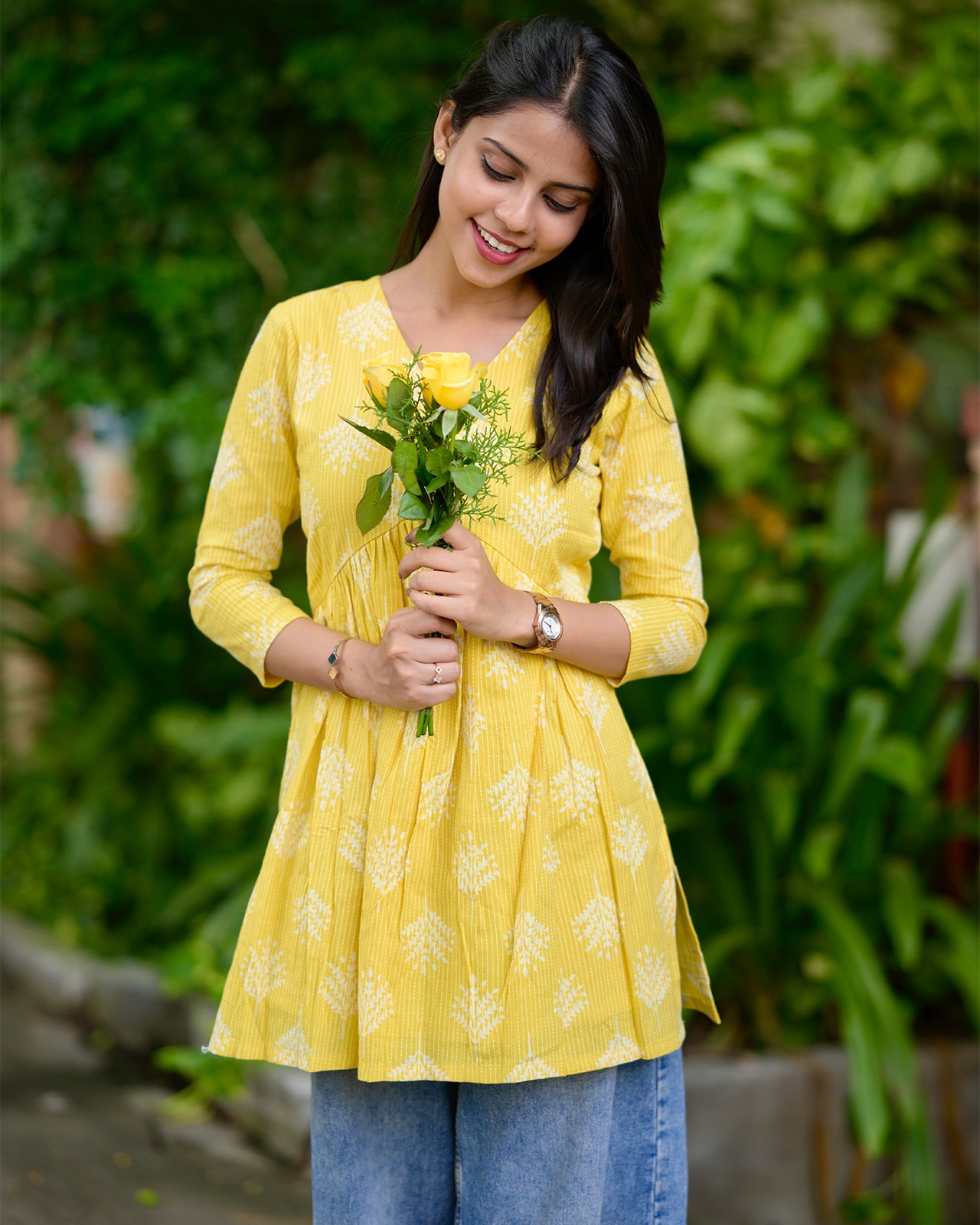 Bring sunshine to your wardrobe with this breezy yellow cotton kurti. Perfect for everyday wear, it offers comfort, charm, and cheerful style in every thread. Pair it with white palazzos or denim for a radiant, effortless look.