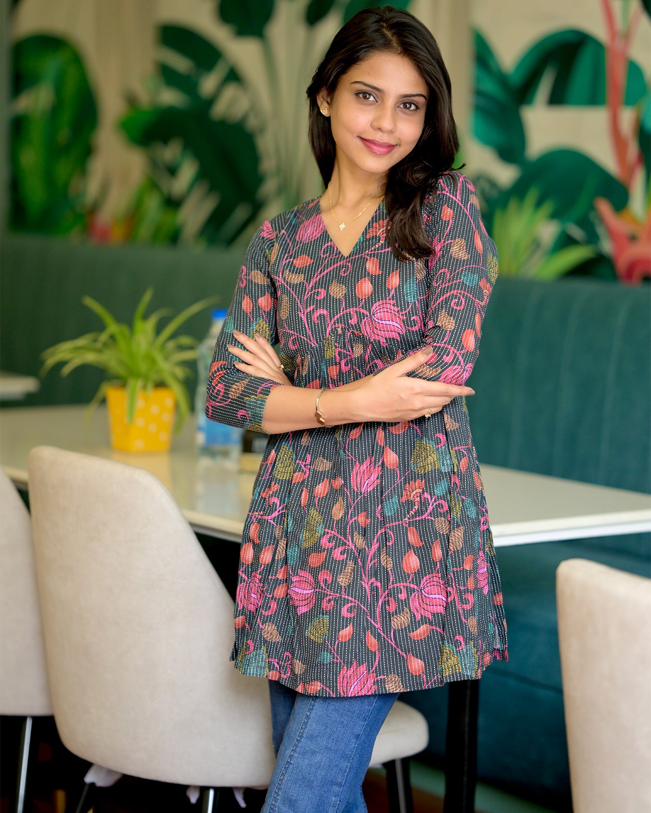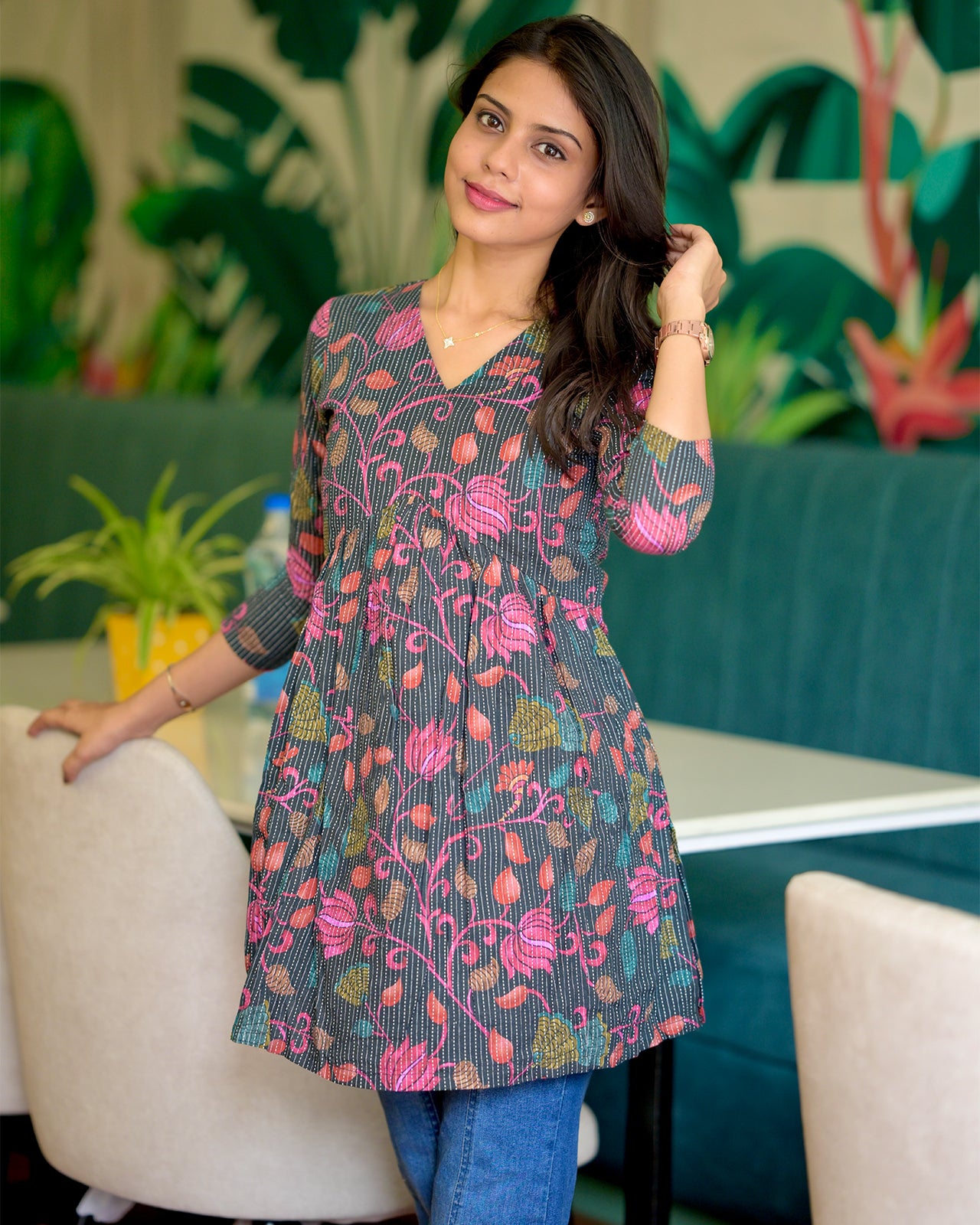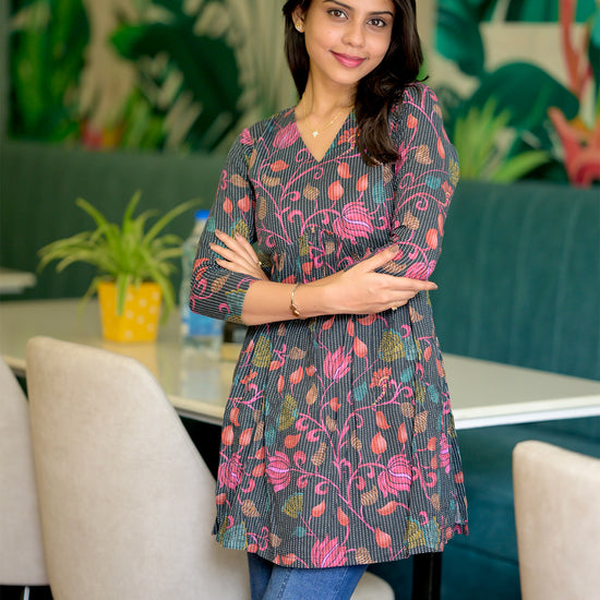 Brighten up your day with this floral charm, a vibrant short kurti crafted in soft, breathable cotton. Its relaxed fit and colorful palette reflects elegance, while the lightweight fabric ensures all-day comfort.
